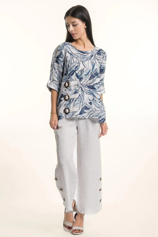 Linen O Floral Linen Top