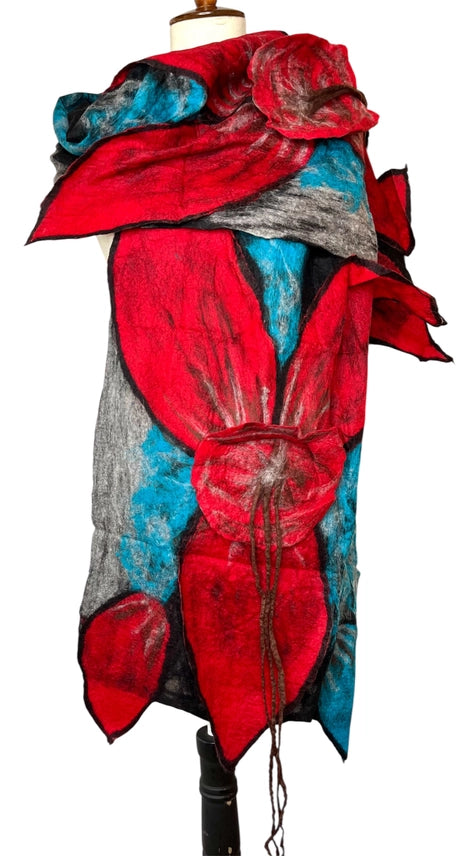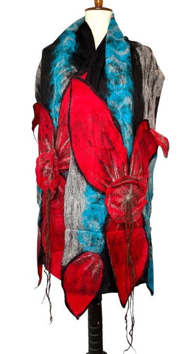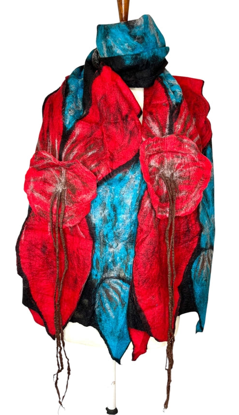 Hand felted merino wool on polyester chiffon